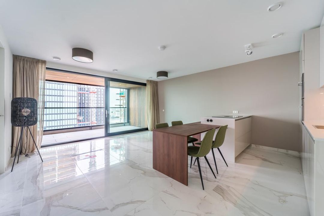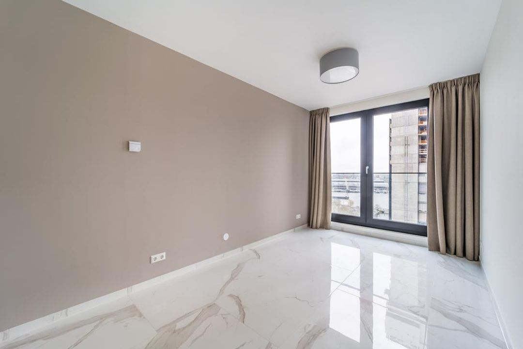 Het appartement is gloednieuw, de nieuwe bewoners hebben het BOLD gebouw net betrokken.