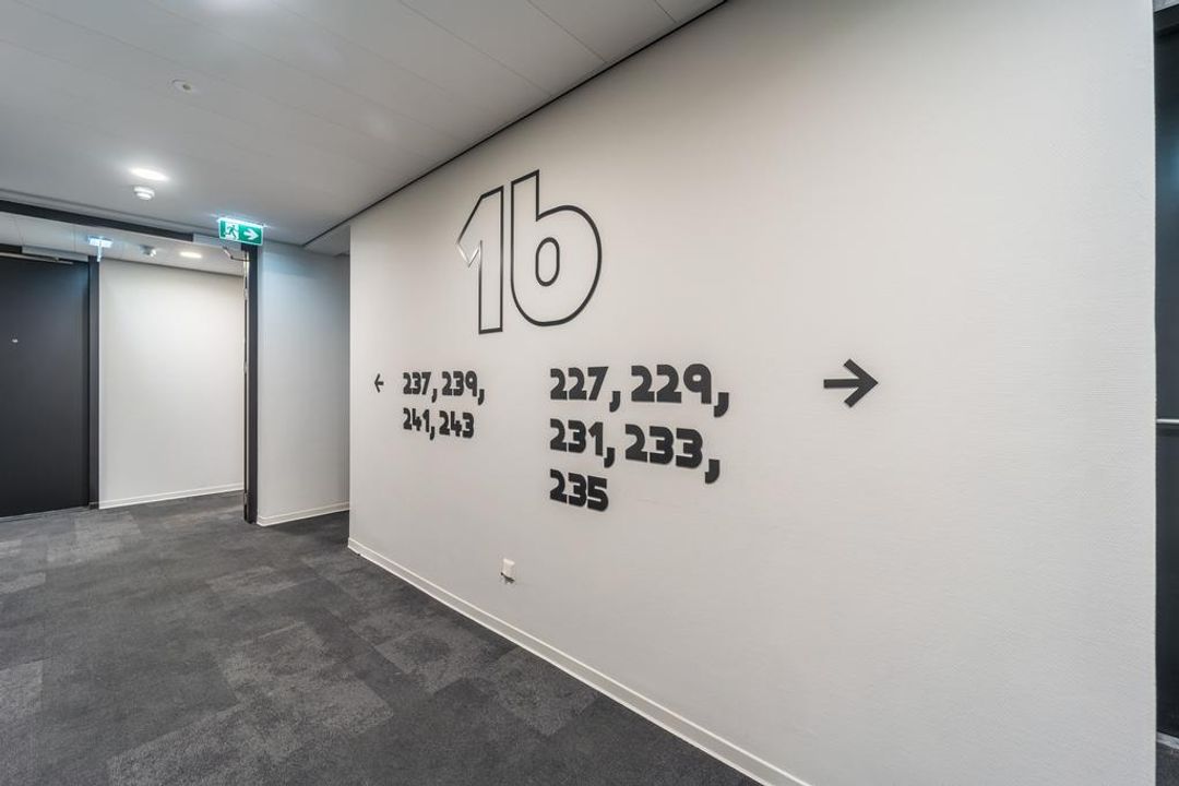 Entree op begane grond met eigen brievenbus en pakketjes-box. Lift naar de zestiende verdieping. Hal met toegang tot gastentoilet, ruime bijkeuken en bergkamer. De entree naar de woonkamer is overweldigend, de ramen van vloer tot plafond zorgen ervoor dat er veel licht de woning binnenkomt.